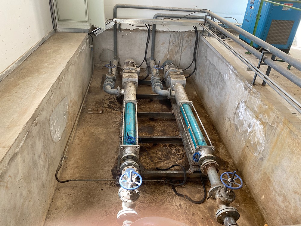 圖為 市政污水處理廠(chǎng) 以前使用的 螺桿泵 給壓濾機(jī)進(jìn)料