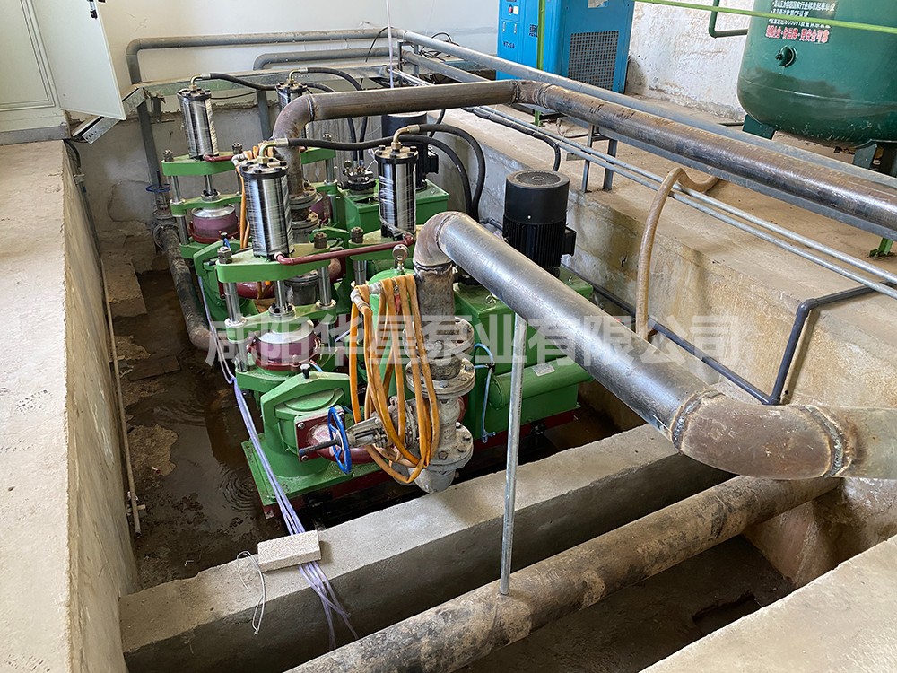 這是更換后使用的節(jié)能型壓濾機(jī)入料泵